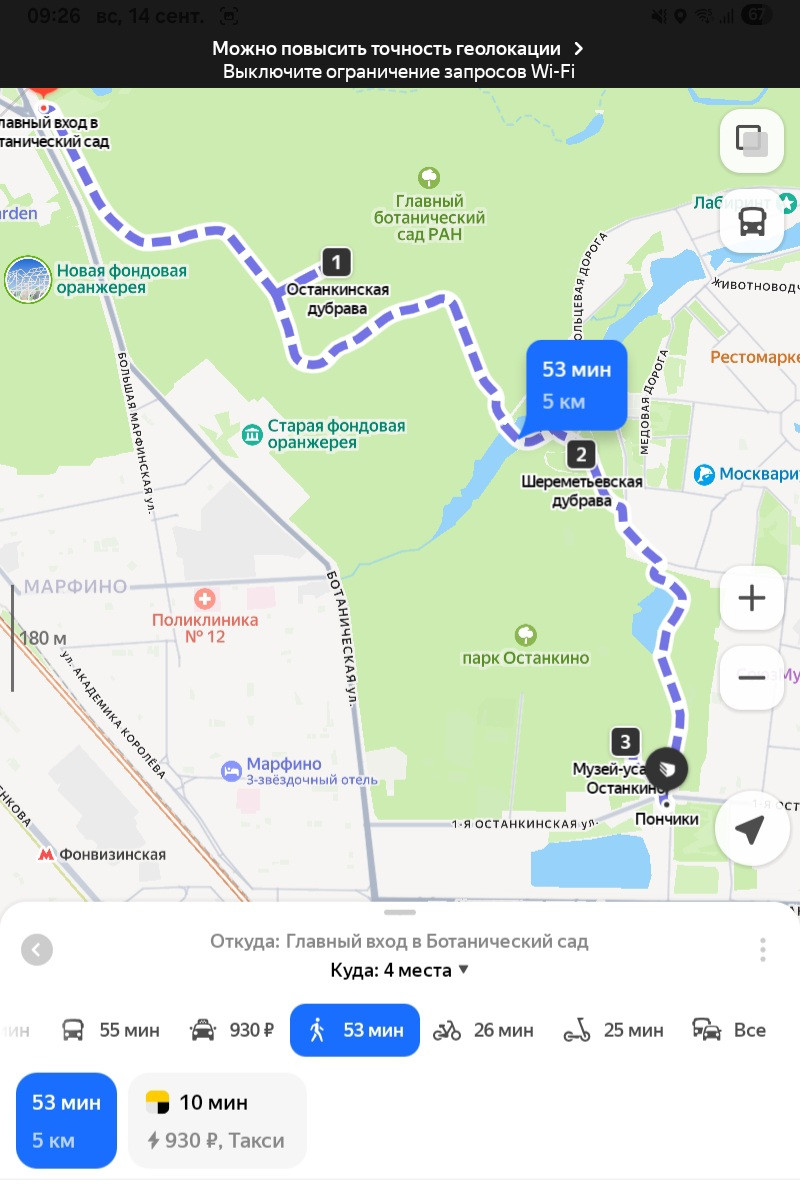Сегодня у нас маршрут от Главного входа в Ботанический сад до пончиковой в Останкино. Маршрут пример 5 км в одну сторону. По факту будет больше.