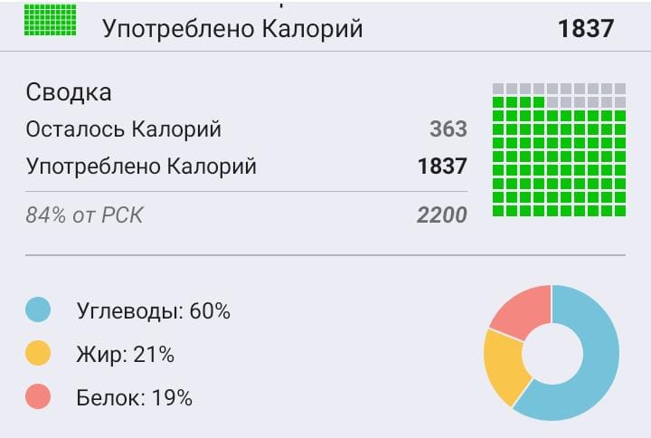 У меня так за день по питанию. По движению - мало, по настроению - еще хуже…