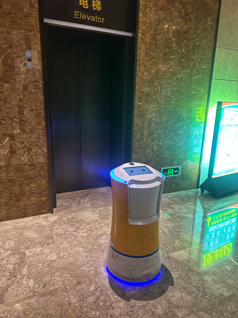 А ещё тут в отеле по этажам рум-сервис развозят вот такие роботы милые, еда внутри под крышкой белой