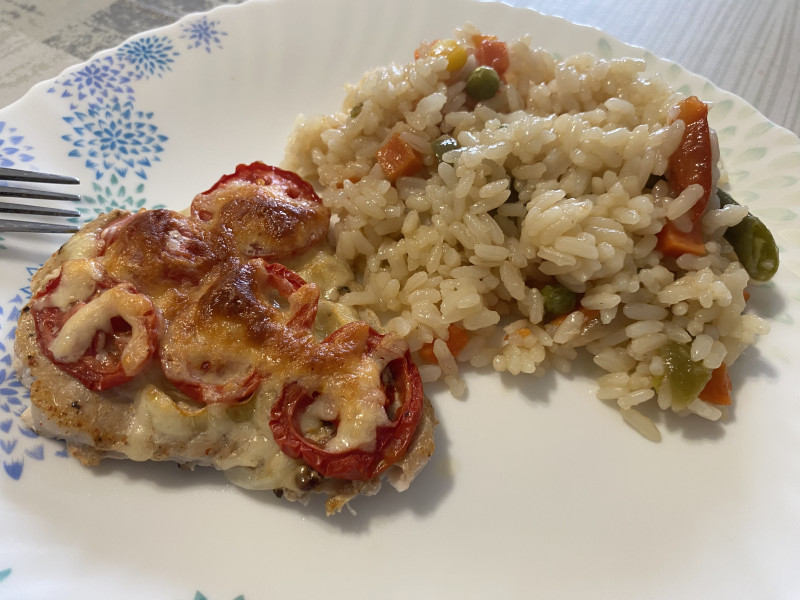 У меня на обед рис и запеченная свининка))