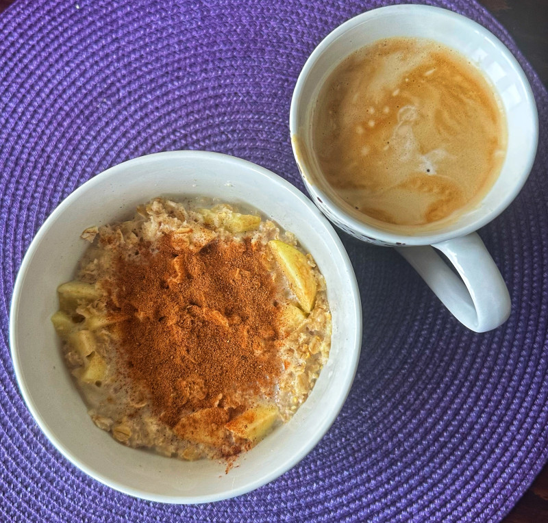 На завтрак были оладьи на кефире с отрубями и медом + кофе + виноград. На обед будет борщ, на ужин - не знаю, где мы будем есть