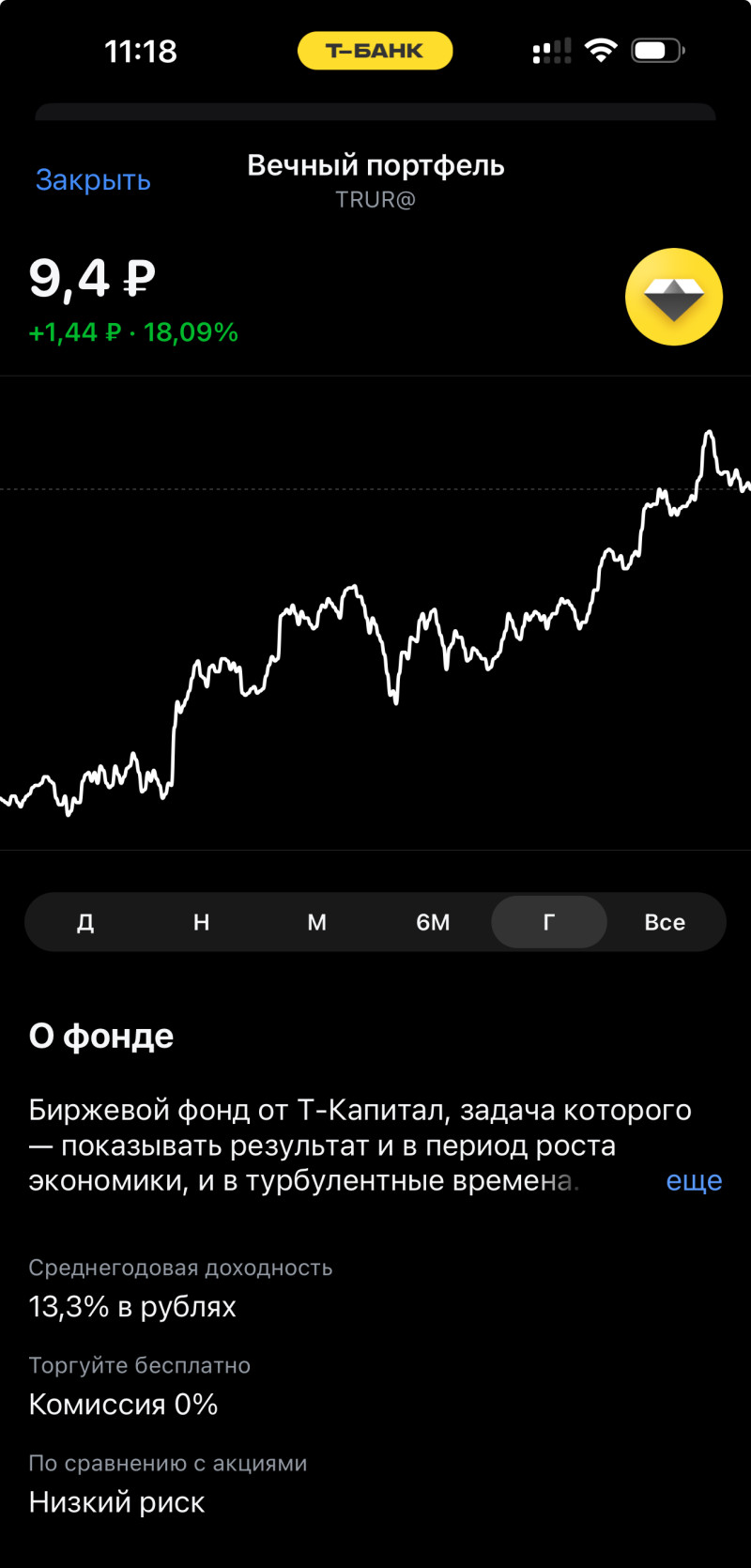 Там подключен «верный портфель». Вот доходность за год. Гарантируют 13%, для меня это не интересно, я там же во вкладе держу под максимальную ставку их. А так: