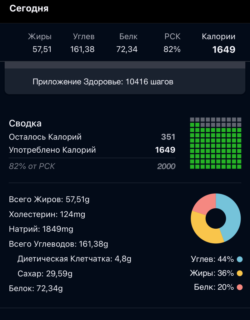 Отчет занятный вышел. Чтобы есть как рекомендовала диетолог - нужно жрать торты каждый день! По КБЖУ подходит!