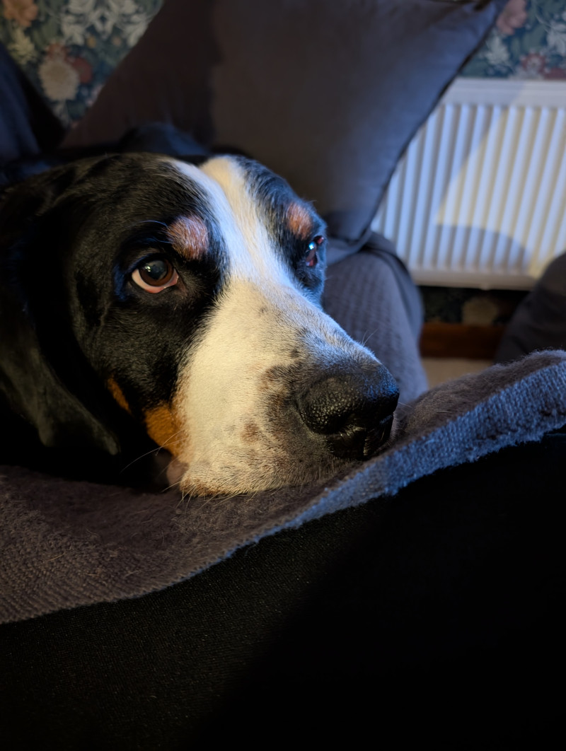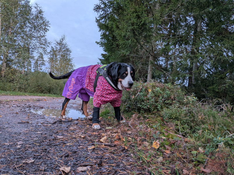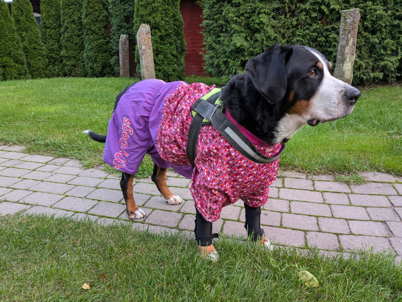 У Адель больные лапки .Ветеринар ей сказал носить бандажи на передние лапки,а ей это не нравится.