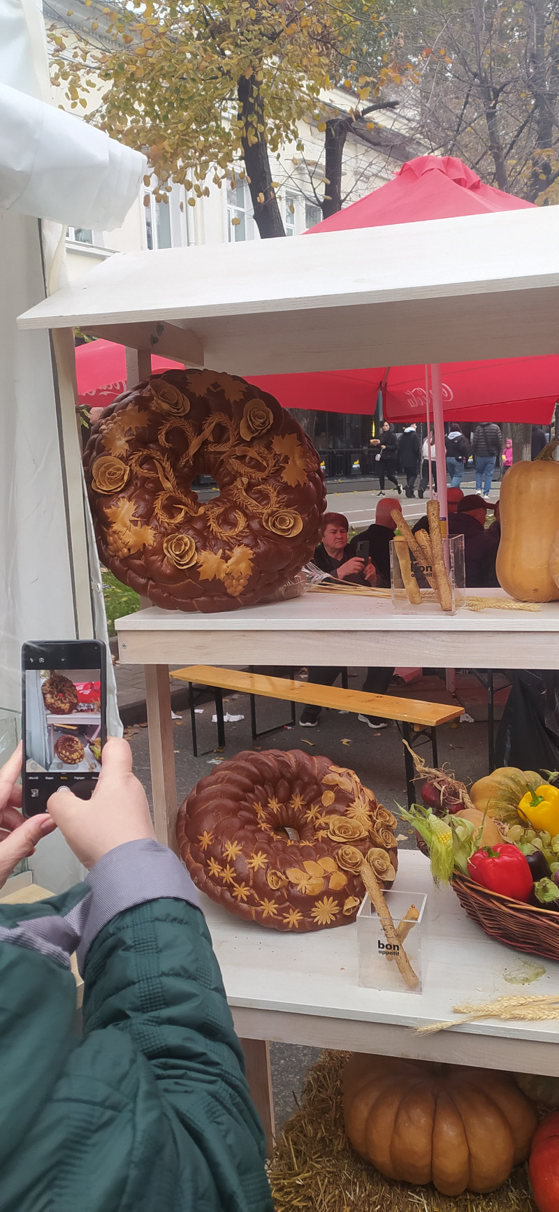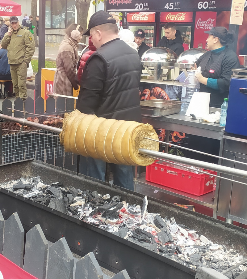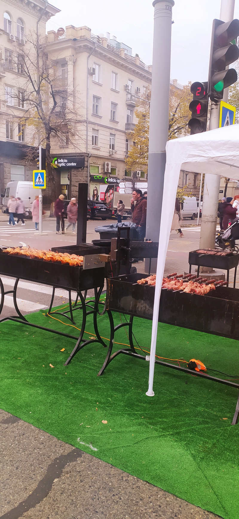 Покажу немножко и город. Он странно выглядит, когда вместо транспорта барбекю, но имеет свое очарование. Это провинциал приехал на заработки в столицу Он же - сгорел на работе... Рулька наверное Шашлык-машлык Праздничное хлебобулочное изделие. Такое обычно не едят, а украшают им стол на свадьбах Армянские рёбрышки, но это не точно... Плацинды (если найдете на фото, пирожки, по которым прошёлся каток) и овощи, закуски Сегодня погода не очень, даже дождик был немножко, по