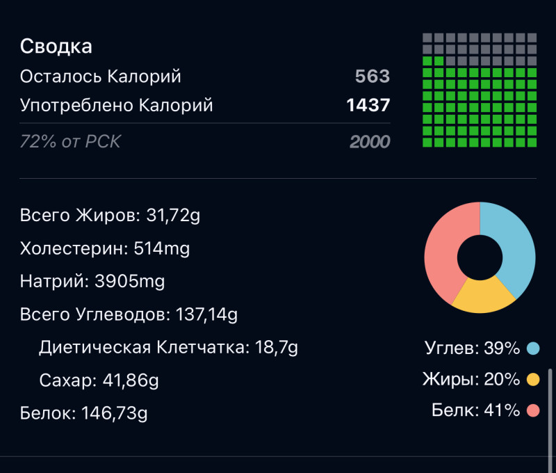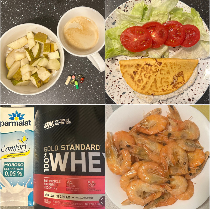 Вот так сегодня…. Перебрала немного по калориям т.к. большая порция в обед была и все съела за компом под работу 🤦‍♀️ и еще апельсиновый фреш и яблоко. Надо что-то одно оставлять. Недовольна питанием, нужно лучше планировать