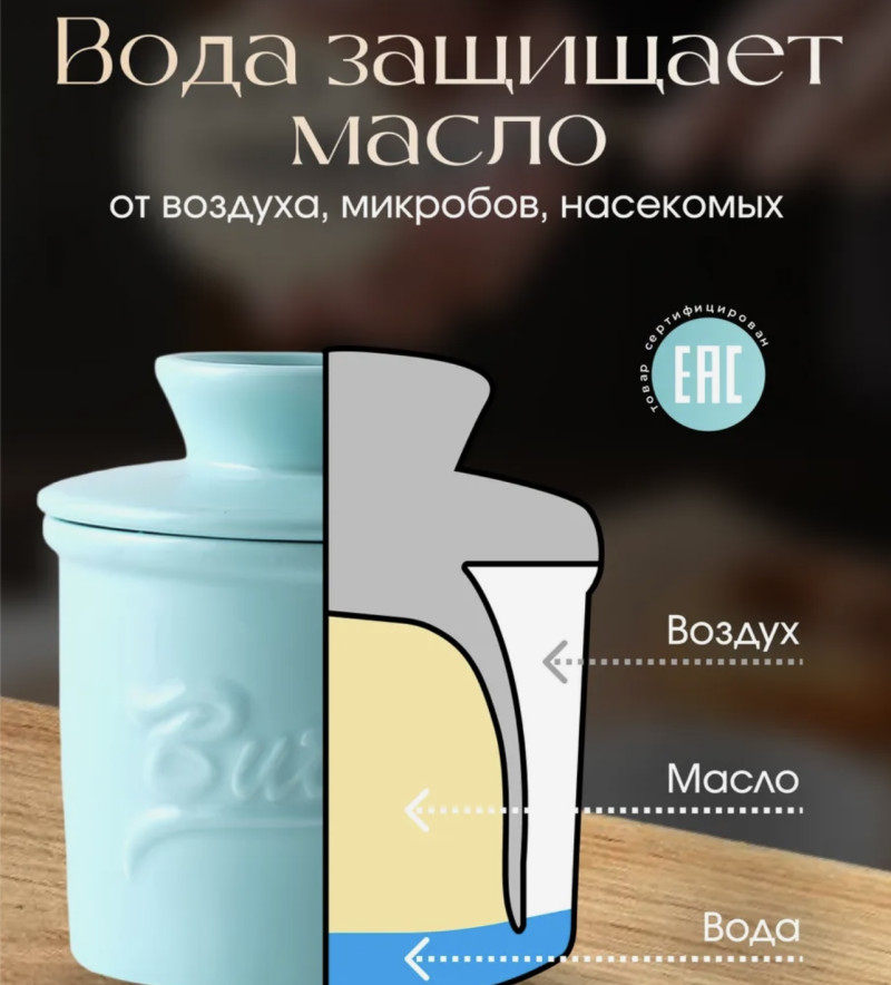 Меняя тему- ты слышала о французской масленке?)И нет, это не что-то пошлое) Это керамическая или фарфоровая баночка из двух частей: в верхнюю кладут масло, в нижнюю наливают немного холодной воды. И масло, что в ней лежит, не портится, не кислится и будет всегда очень мягким — в идеале, чтобы намазывать его на тост. Секрет прост: вода перекрывает доступ воздуху, и масло может спокойно жить на столе при комнатной температуре. А я и не знала, покупала просто масленки с крышкой или вообще
