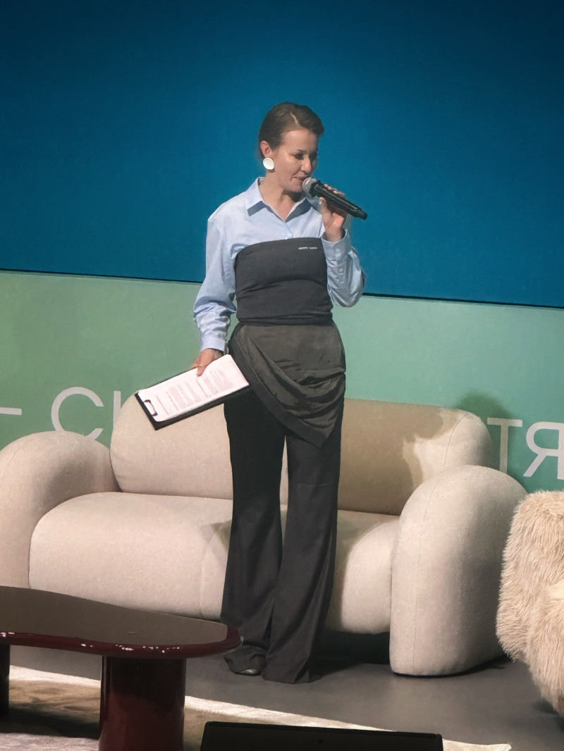 Деловая мода от Ксении Собчак. Корсет не совершенен, но сапожки серые в цвет костюма