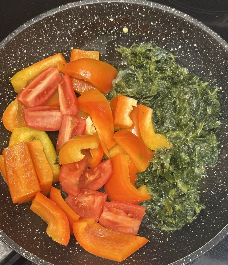 Овощи мелко режу, чтобы они немного потушились и мягкие стали)) В таком размере, проще просто в прикуску есть, они останутся сырыми!)