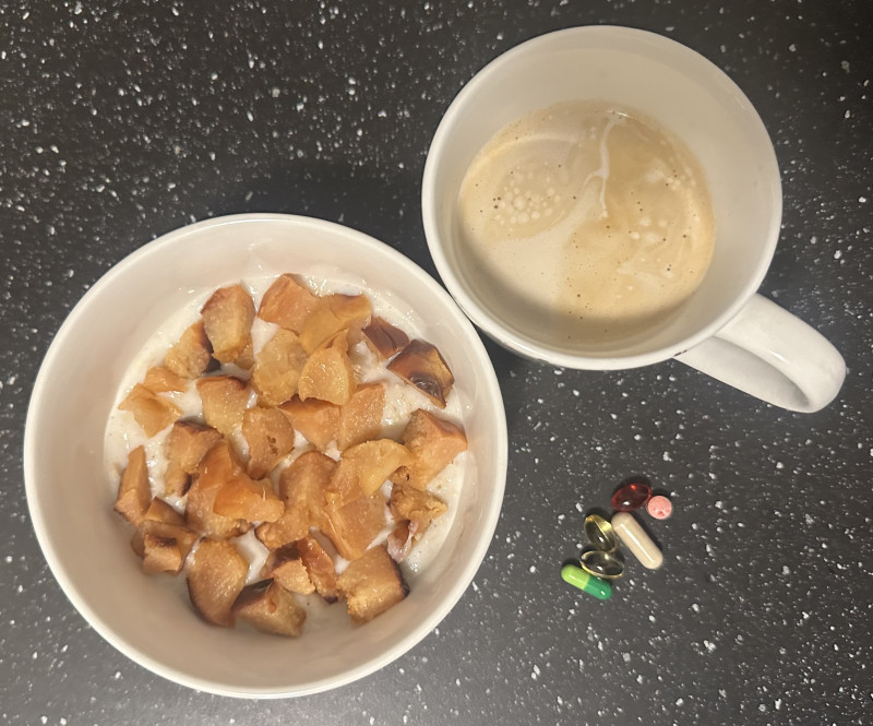 Сегодня овсянка с запеченной айвой.