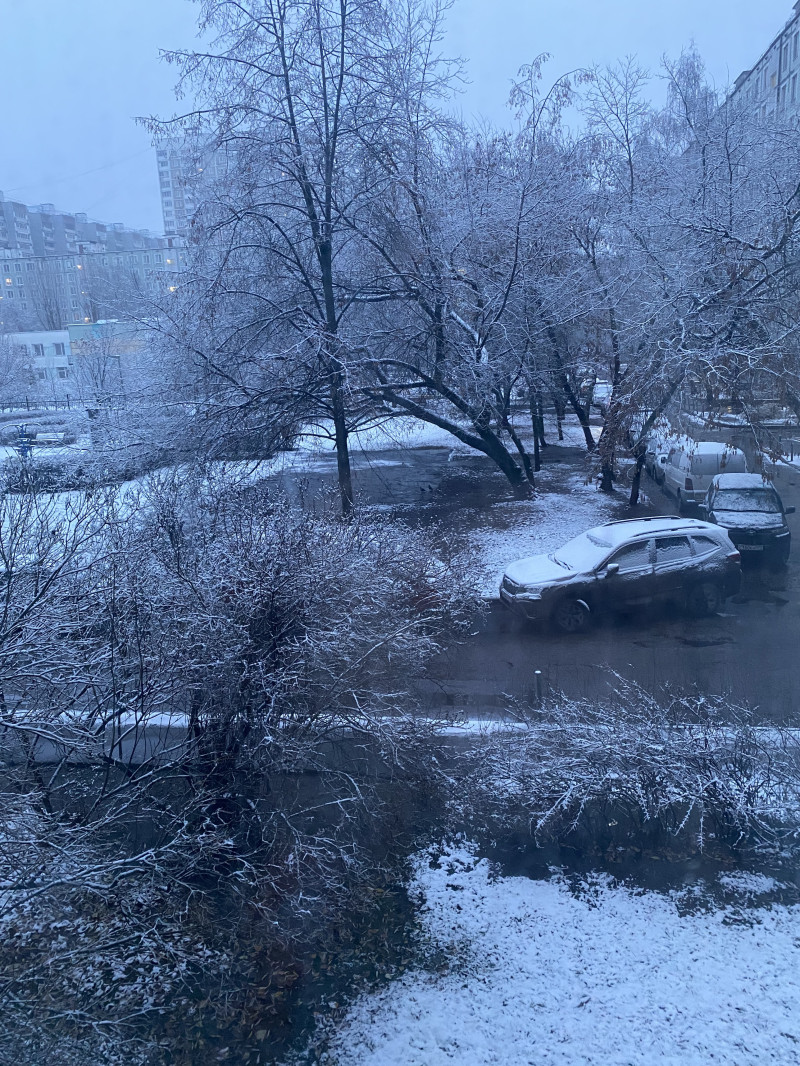 И тоже снег вчера с вечера. Подморозило. Впервые за несколько недель был день ясный и солнечный, а не сумеречный. На выходные обещают сложную дорожную обстановку. Сегодня 100% будет день жестянщика....