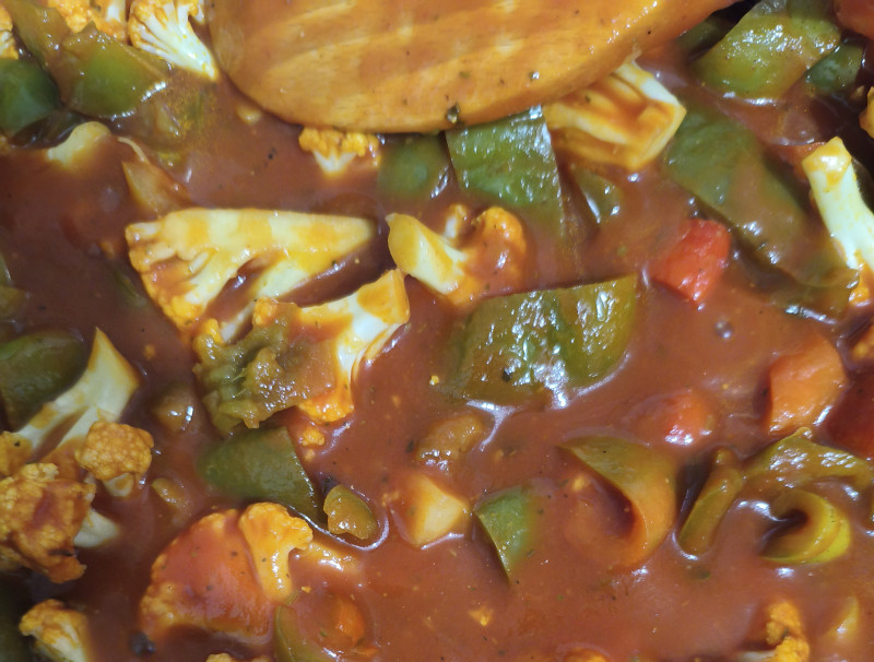 А еще и бекон. Понимаю, что не зожно, но так как это все ооочень долго тушится, то даже бекон становится мягким, нежирным и зожным.