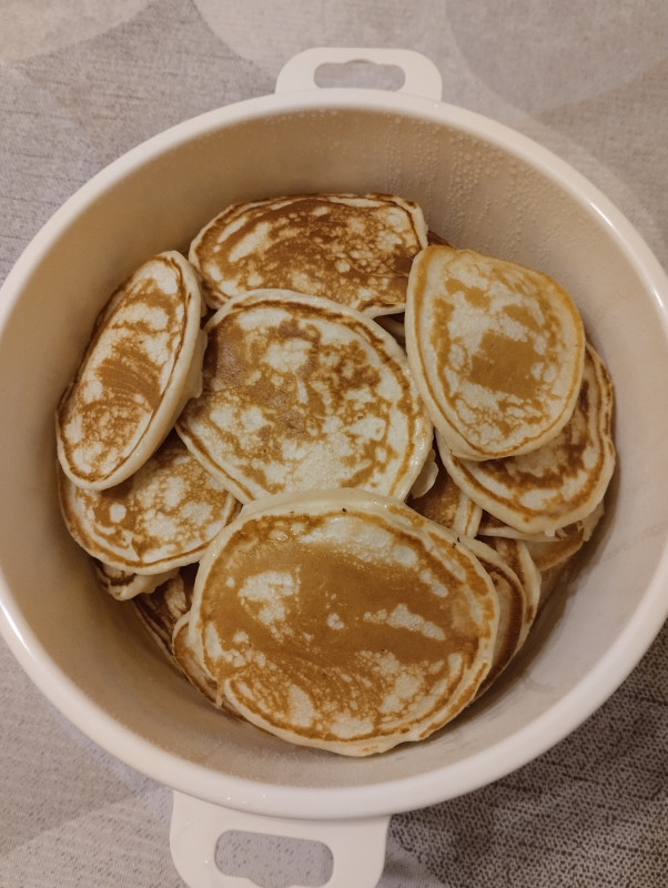 Я нажарила тазик оладьев на кефире.