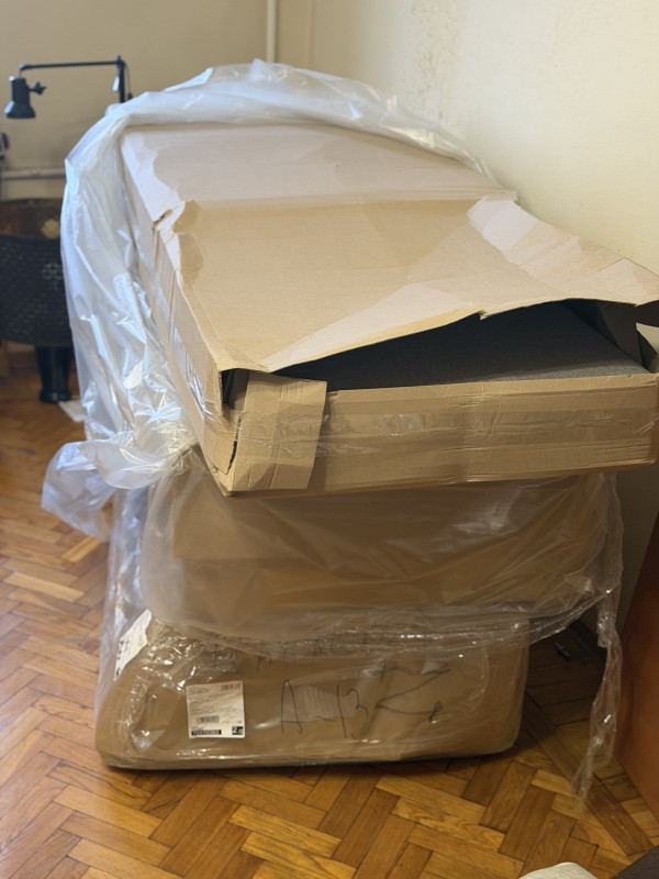 Притащили диван, собирать отказались, курьеры, не сборщики.Сейчас будем с мужем извращаться.Для всяких пони- это диван в разобранном виде, в коробках.