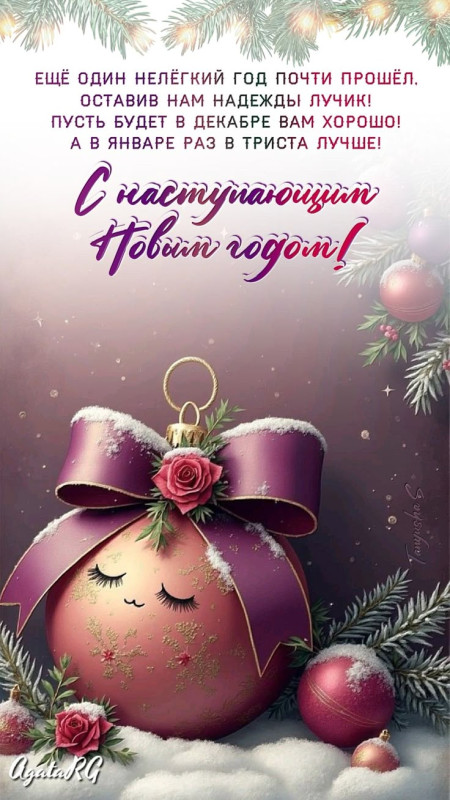 Девочки и не менее милые мальчики, всех с Наступающим годом!)) Как всегда финансового благополучия!!! Здоровья вам и вашим близким!!! Пусть горести и печали обходят стороной!! Мирного неба и теплого хлеба!!! Обнимаю вас!!!