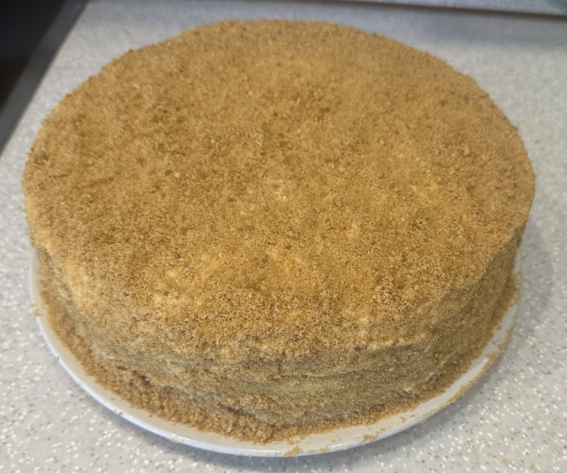 Торт собрала, хватит ему 10 часов на пропитку! Такой большой получился, но все сожрут же за одну ночь 🙈