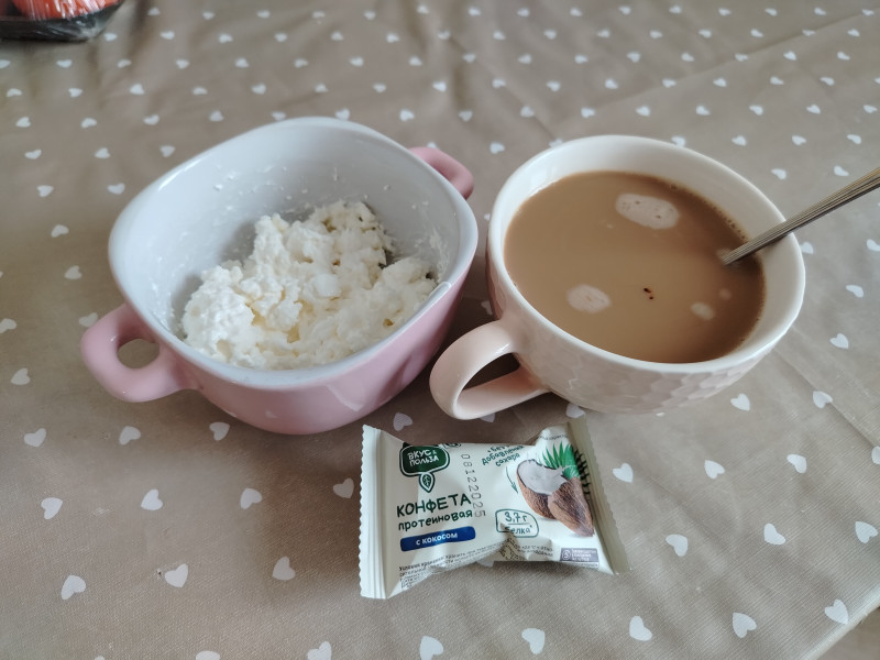 Кашку надо кушать, Настя! А не конфеты!!! Творог это хорошо, но это блин ни разу не сбалансированный завтрак. После такого завтрака, через полтора часа хочется жрать и начинаешь перекусы закидывать...