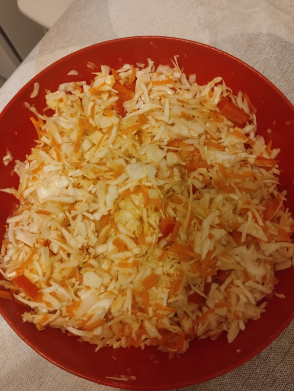 Какой, я свеклу вареную просто натерла, пойдет. В обед в садике капустный ела. Скоро взорвет