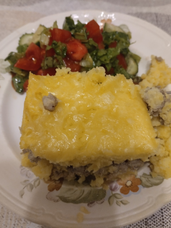 У нас запеканка с салатом из свежих огурцов.