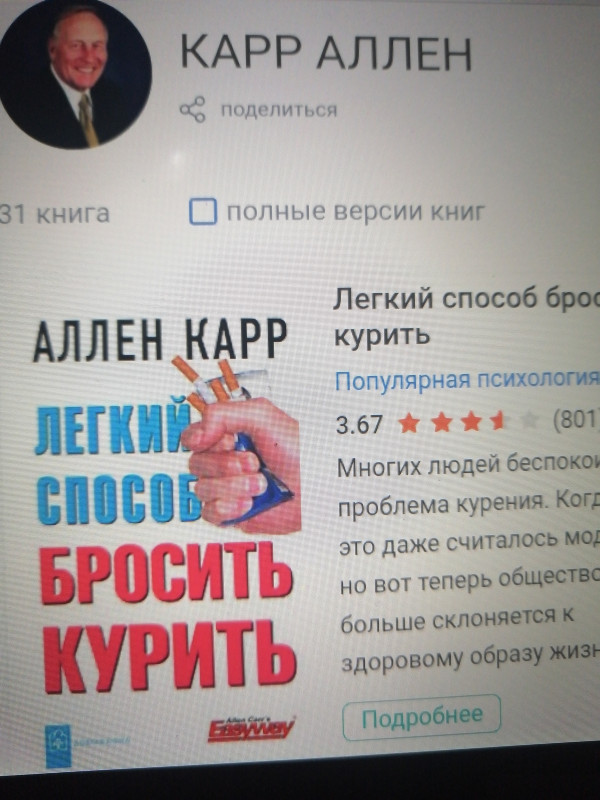 О! А прям неплохие у него книги! Не знала, что есть такой! Спасибо, посмотрю! Тем более с рекомендацией того, что вам это помогло бросить курить - вообще отлично!
