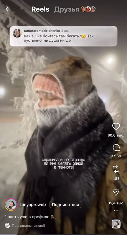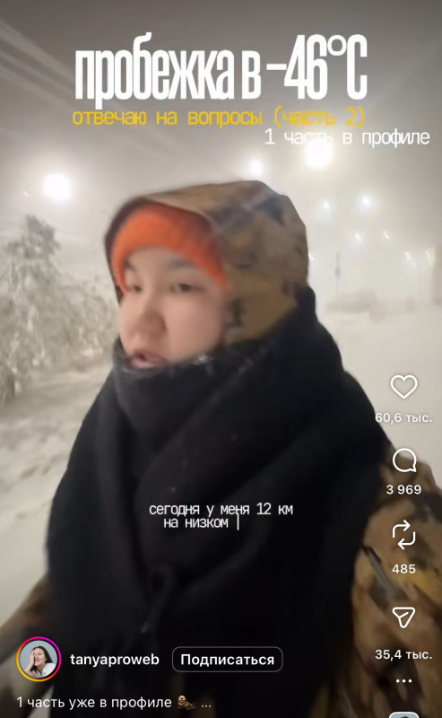 Ого. Вот это мотивация из Инсты! Девушка решила бегать каждый день 12 км!!!! И зимой при -46!