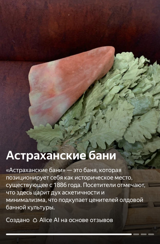 Мне ещё рекомендовали старую общественную баню на проспекте мира - астраханские бани! Там старая волшебная печь типа… но остановка советская!