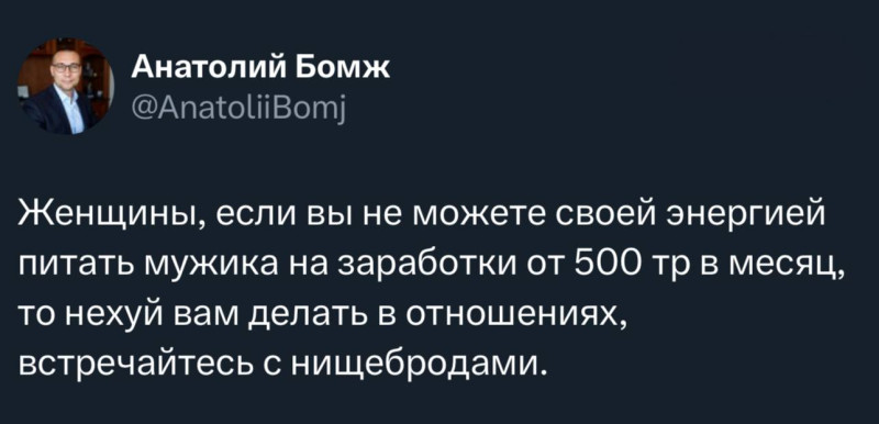 Вот и я про то, ну схожу посмотрю. Посчитаю- сколько мужчин одиночек. А то все свистят, что их много