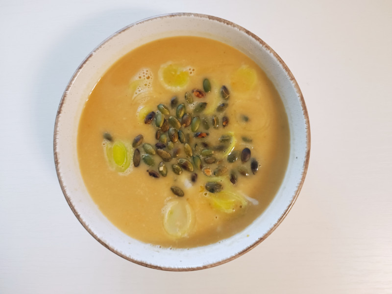 Обед тыквенный суп и хлеб свой