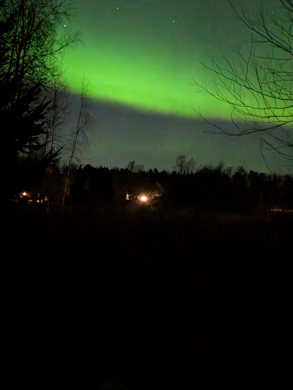 Прошла 15 км. Сейчас у нас очень красивое северное сияние.