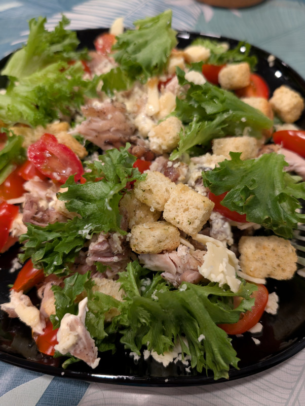 Добрый вечер. На завтрак творог и кофе,на обед готовила салат Цезарь ,на ужин будет вареная куриная грудка с овощами. Сегодня прошла 18 км. Всем хорошей пятницы