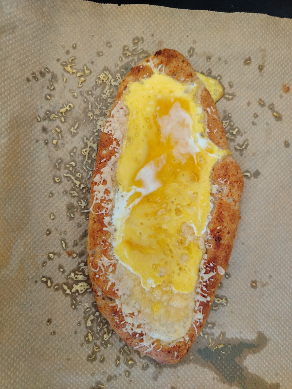 Лунку делаешь и туда желток. Можно еще его сверху немного сыром посыпать)
