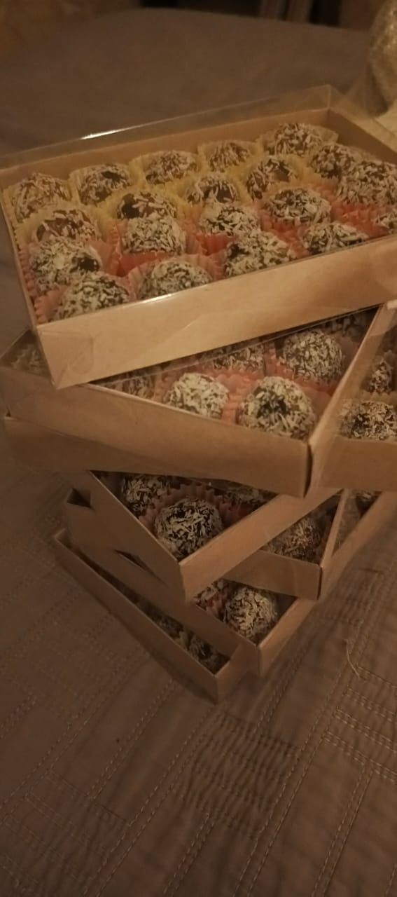 обваливаю чаще в кокосовой стружке, молотых мелко орехах, кунжуте, маке, какао