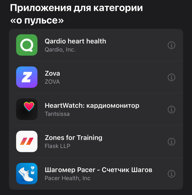 А так любые часы с кардиодатчиками от производителей телефонов имеют свои программы слежения за пульсом. Ну или просто программы