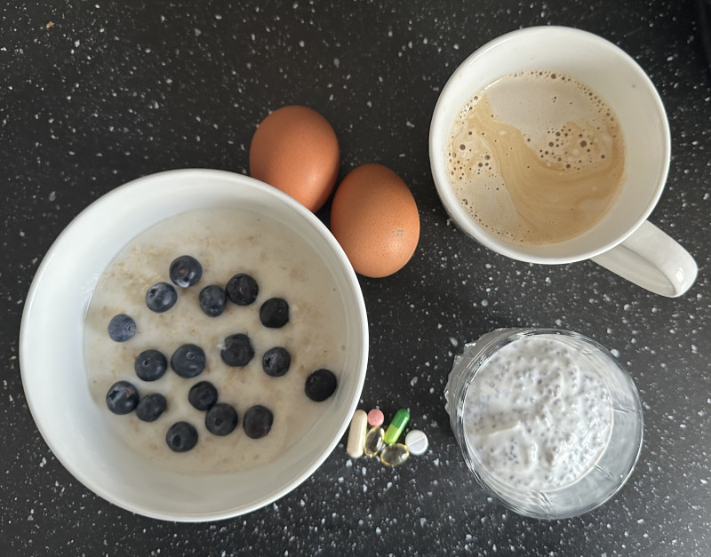 Где? С ягодами овсянка, в стакане - йогурт с семенами чиа.