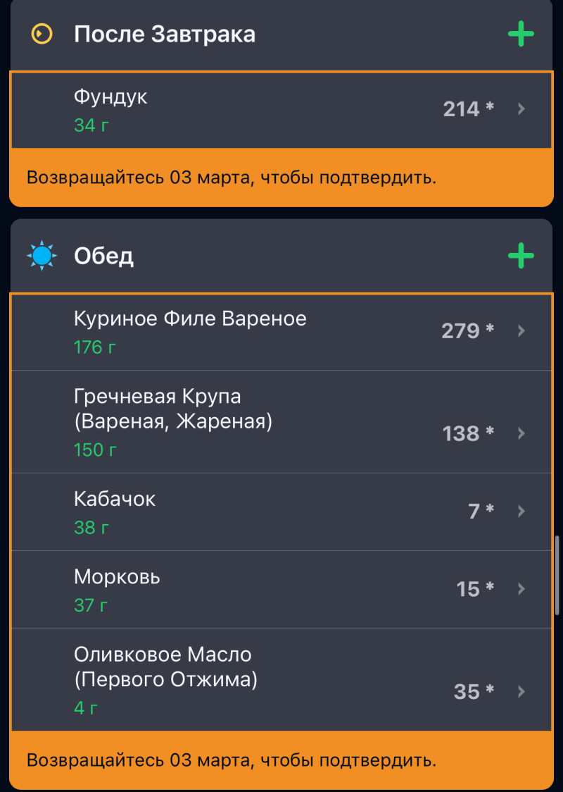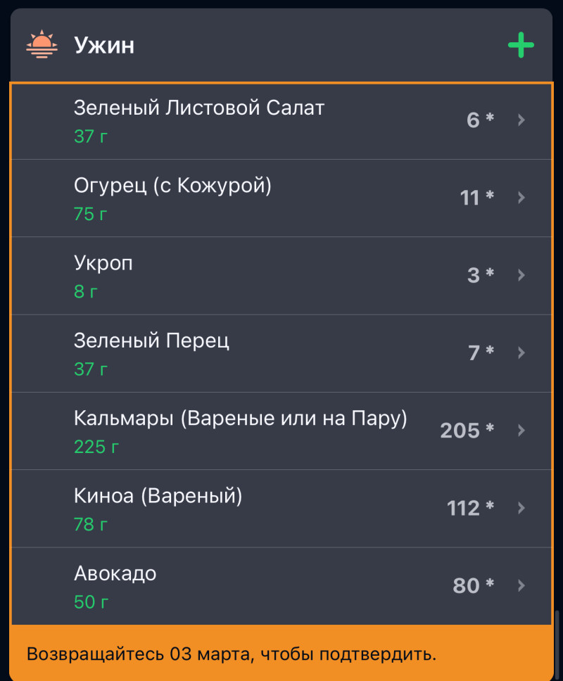 Да, там удобно не думать о том, что есть по плану питания. Но со следующей недели начну его. Там прям уже все забито на день и продукты на неделю к покупке: