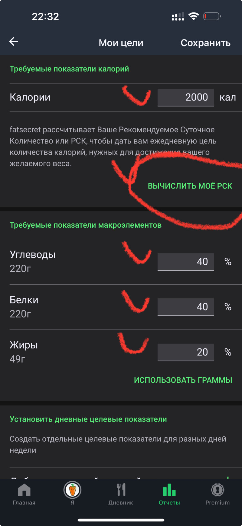 Проценты вбить отсюда с учетом выбранной диеты. И все!