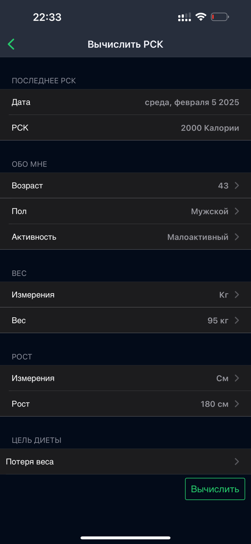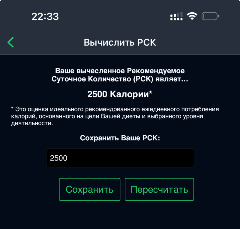 По твоим параметрам выходит 2500 норма, то есть питаться примерно на это плюс минус с учетом процентов по диете, которую нужно выдерживать