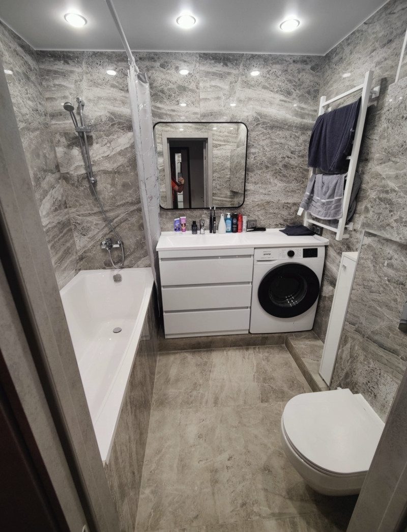 Нет!)) Я сам себе дизайнер!)) Купил квартиру, обустроил как захотел. Сломал стены, объединил большую комнату с кухней и коридором!) Расширил санузел, чтобы ванная лежачая влезла!)) Вот такую красоту купил!))