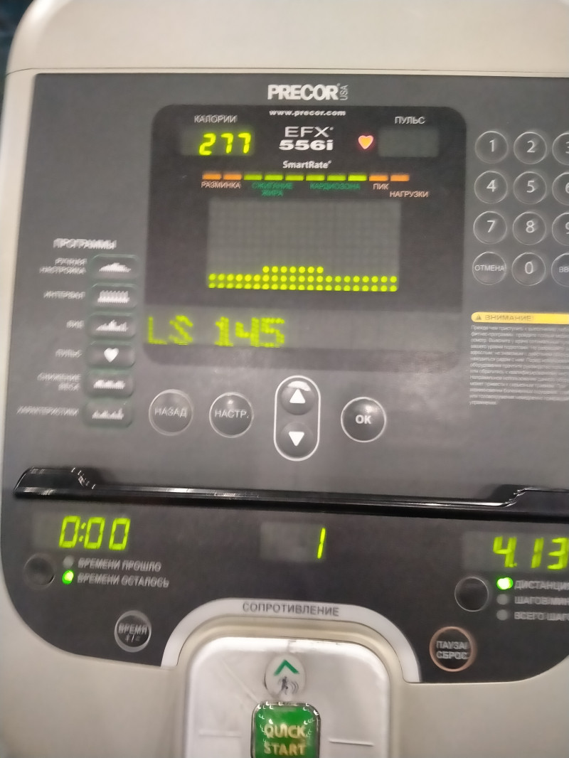Потом эллипс, примерно 34 минуты. Дорожка конечное не такая эффективная, если не бегать по ней, а ходить.