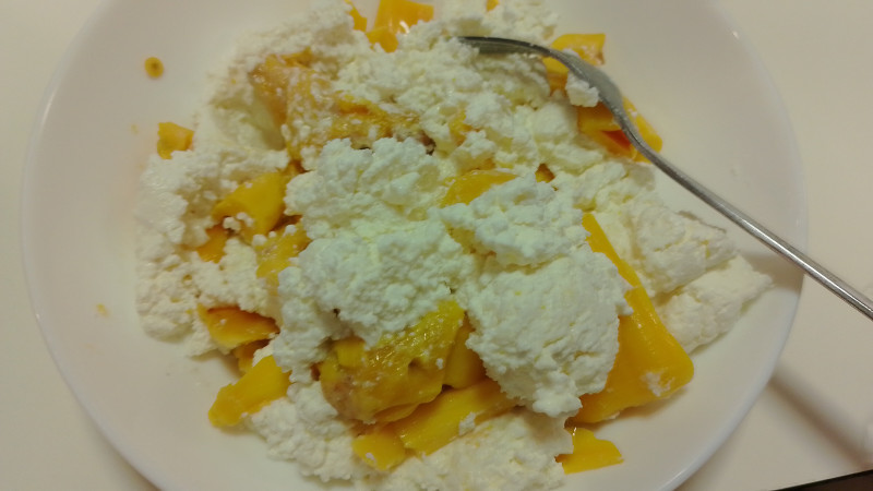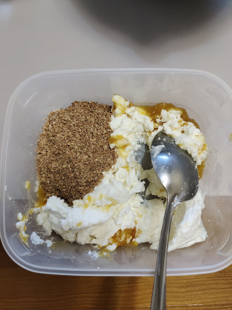 Сибирская клетчатка в деле( взяла у мамы), с творогом и манговый джем без сахара.