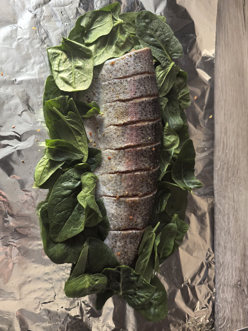 Мой сегодняшний ужин!)) Ещё помидорок черри накидаю и в духовку)))