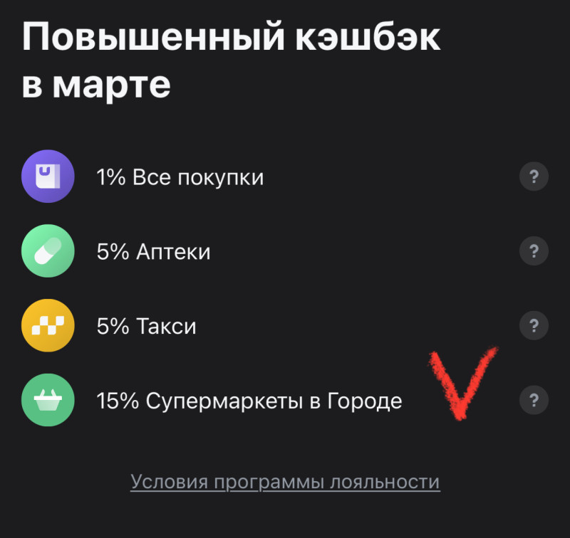 Это кэшбэк в Т-банке на март, если покупаешь через их приложение в разделе «Город»