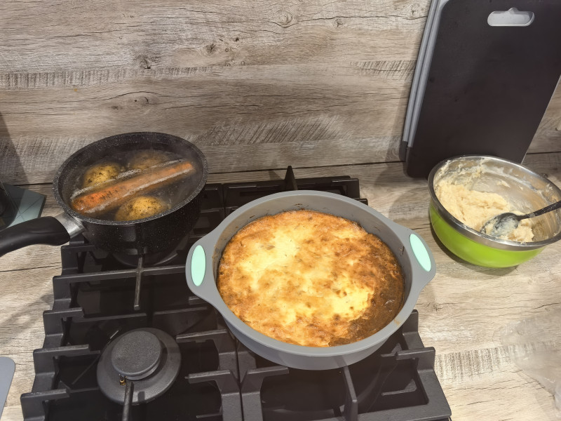 Запеканка с яблоком и корицей. Овощи на винегрет. Фарш на куриные сосиски))