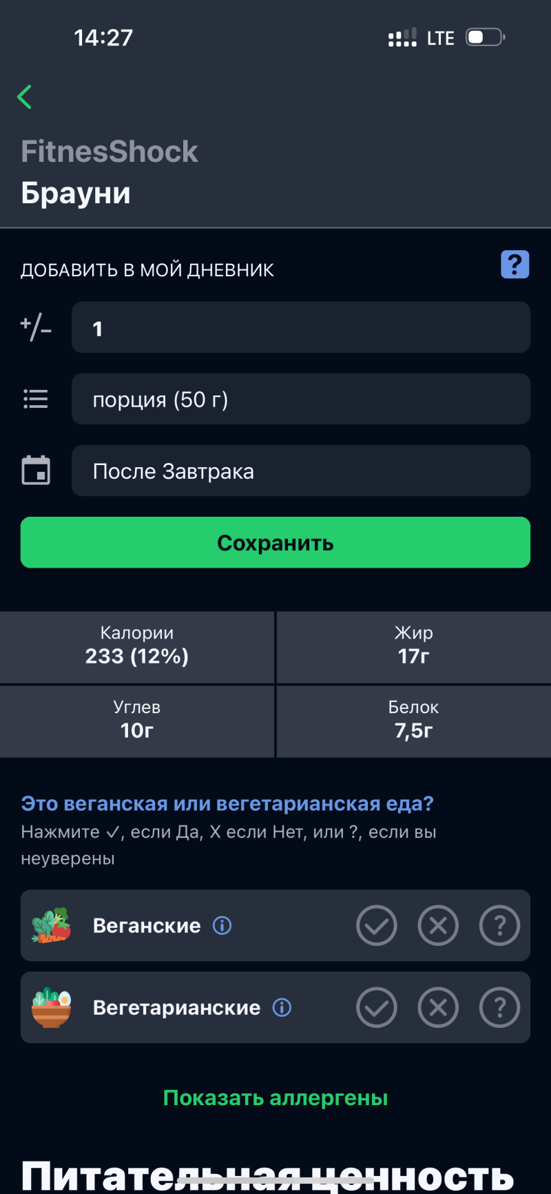 А я еще новую функцию в FatSecret нашла - ввод еду по штрихкоду! Думала сколько этого могу съесть без вреда по калориям Все быстро отсканировала сразу с граммовкой Поняла, что много жиров и решила съесть по половинке… вкус совсем не понравился, химозный и пластилиновый, хоть по структуре нормально выглядит Внесла реальные части от десертов в дневник. Все же так быстрее все считается
