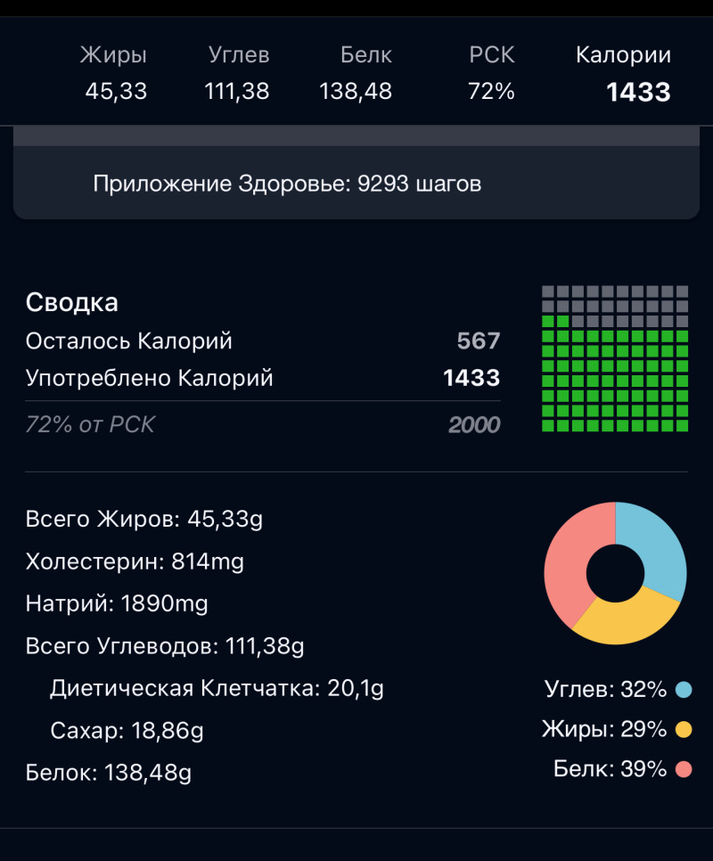 У меня намного скромнее рацион. Если столько буду есть, то стану совсем полным