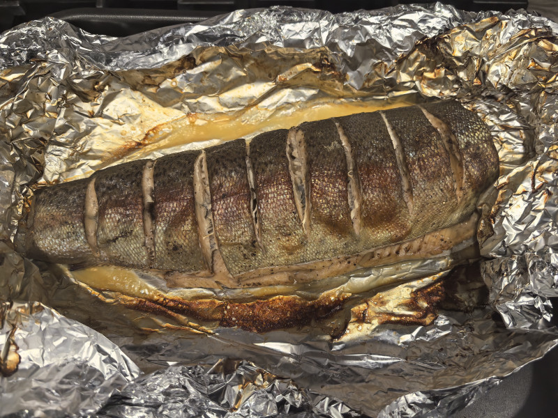 У меня рецепт один. Отрезать рыбе голову и плавники. Сделать надрезы. Соль, перец, лимоном полить и в фольгу. Немного дать промариноваться и в духовку на 20 минут.