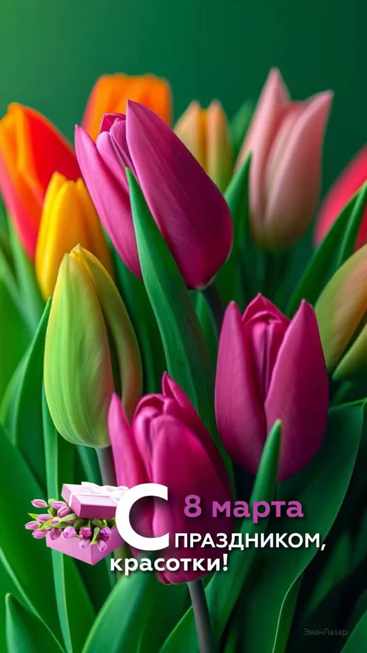 Поздравляю наших прекрасных, сильных, обаятельных, мудрых, нежных, заботливых и решительных девочек с 8 Марта! Пусть огонь в ваших глазах не гаснет, а в душе, словно яркие тюльпаны, распускаются любовь, вдохновение и радость! ) С праздником вас дорогие девочки!