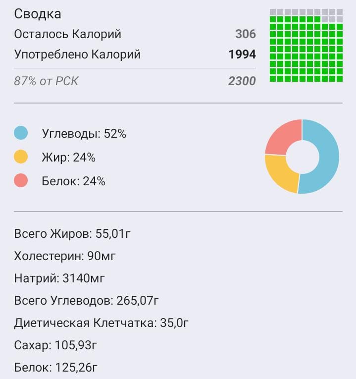 Макс, так а что с мясом? Если ты добавишь котлеты - как раз наберешь норму калорий!