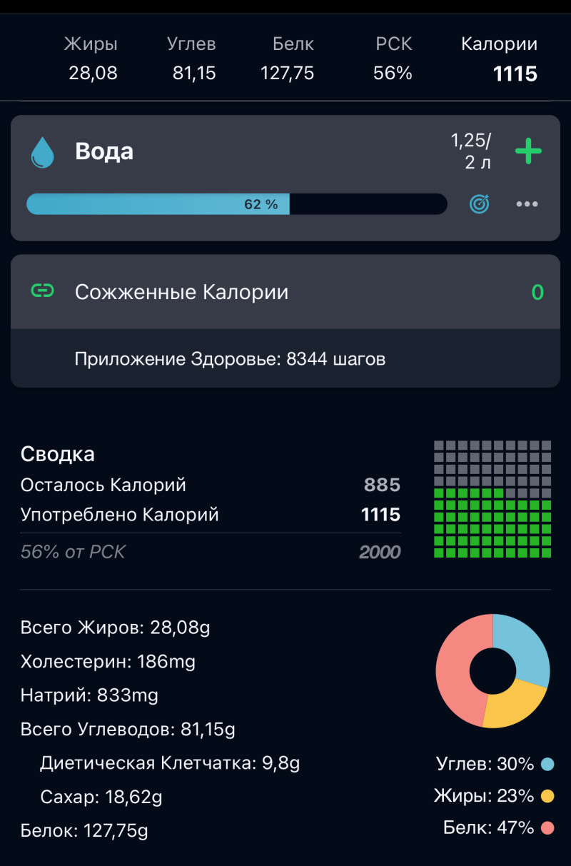 Лайтовый отчет… есть совсем не хочется, хочется спать.
