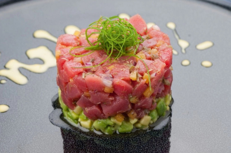 4.Тунец порежем небольшими кубиками. Для тартара можно взять свежий тунец, копченый или слегка просоленный.